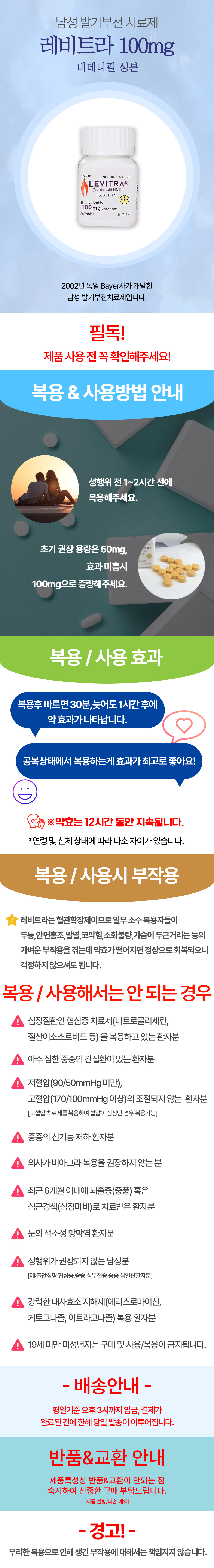 경구용 발기부전치료제인 레비트라의 주성분은 바데나필이며 약효는 최대 12시간까지 지속됩니다.